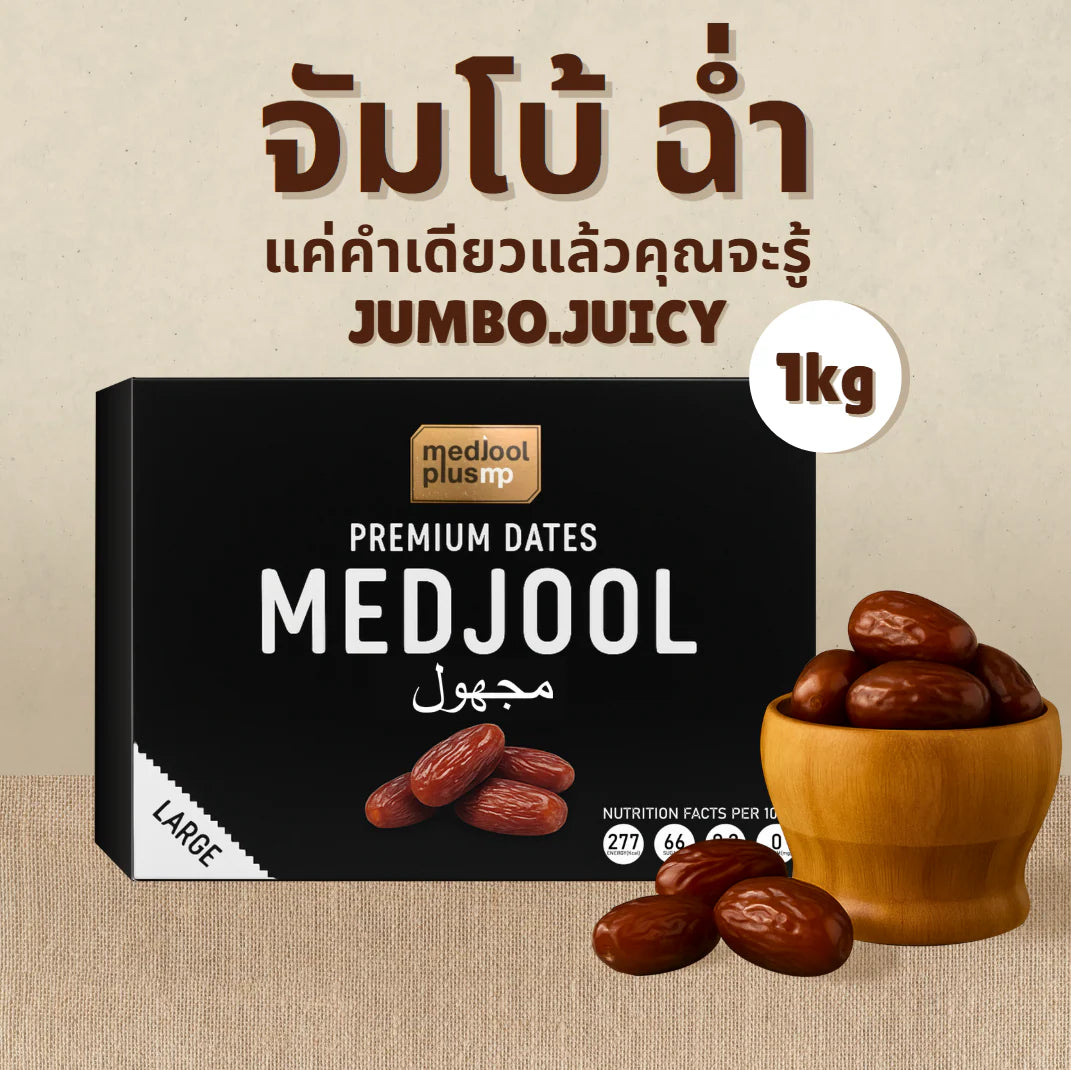 Medjool Plus Medjool Dates 1KG (Jumbo Size) – Premium Natural Sweet Dates | No Sugar Added | High Fiber & Energy Boost | อินทผาลัมเมดจูล เม็ดใหญ่ 1กิโล หวานธรรมชาติ ออร์แกนิก ไฟเบอร์สูง ไม่มีน้ำตาล Exp. 31/12/2026